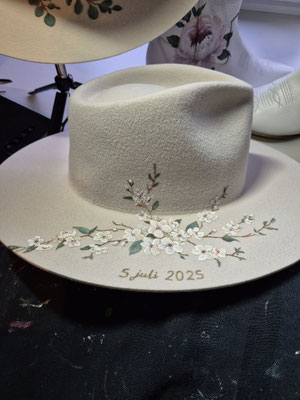 For brides who love a boho or modern edge, a personalized hat or bridal kimono is the perfect finishing touch. A kimono adds elegance to your “getting ready” moment, while a painted or embroidered hat creates a bold statement during your photoshoot or outdoor ceremony.