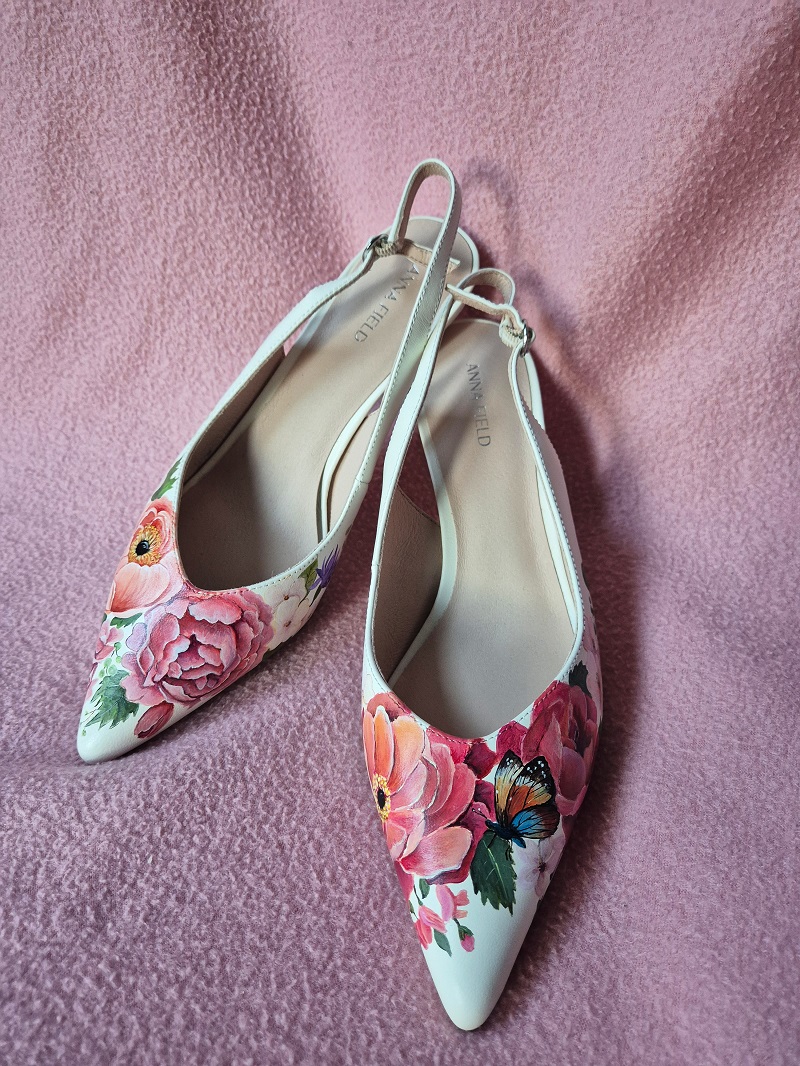 Ook pumps kunnen beschilderd worden, ook deze lever je bij mij aan. We overleggen goed wat jouw wensen zijn.